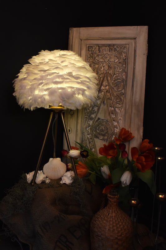 Sold outWhite Feather Tripod Table Lamp