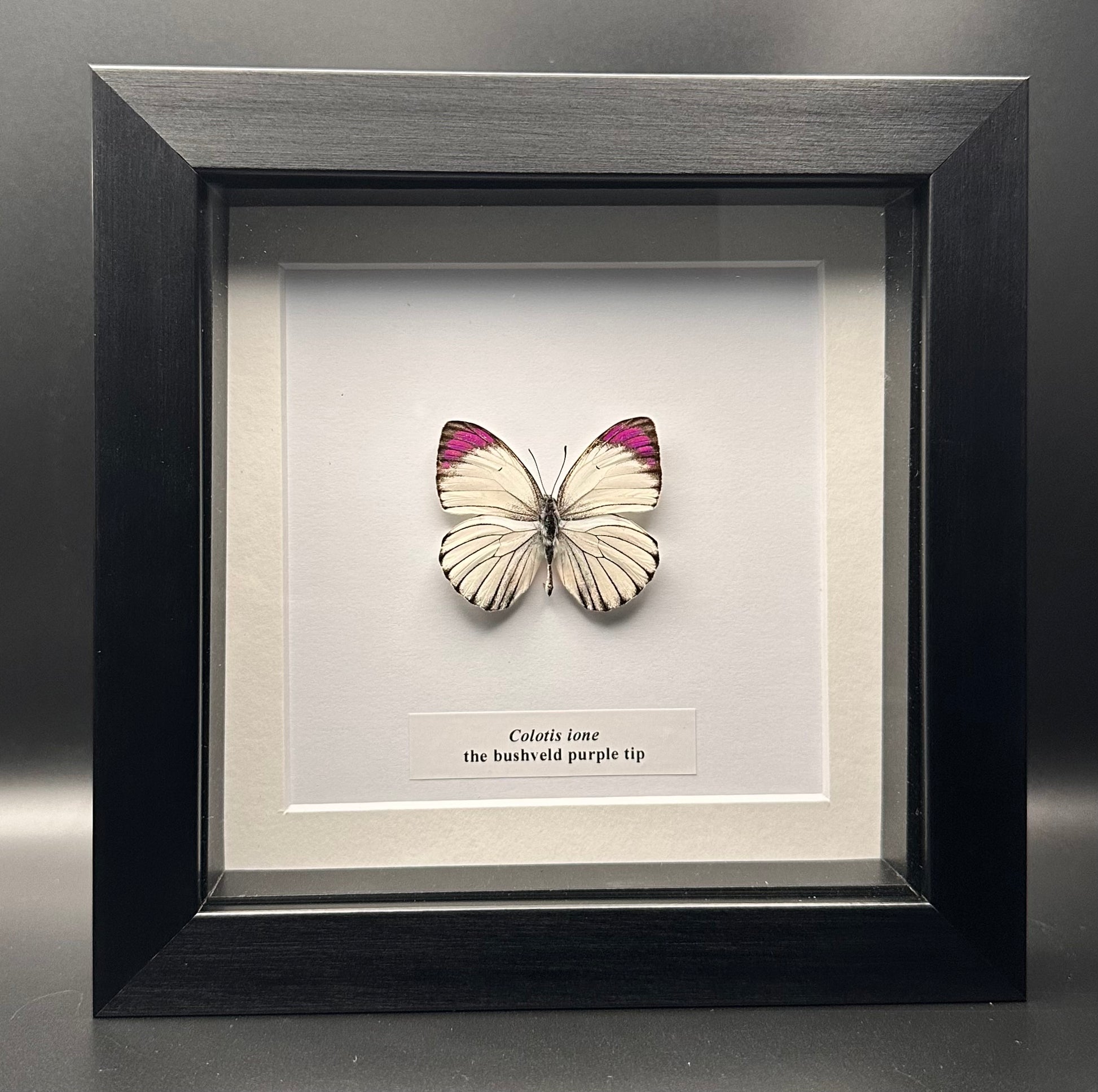 Measurements :The species is pinned and preserved in a 18x18cm black frame a white card background.