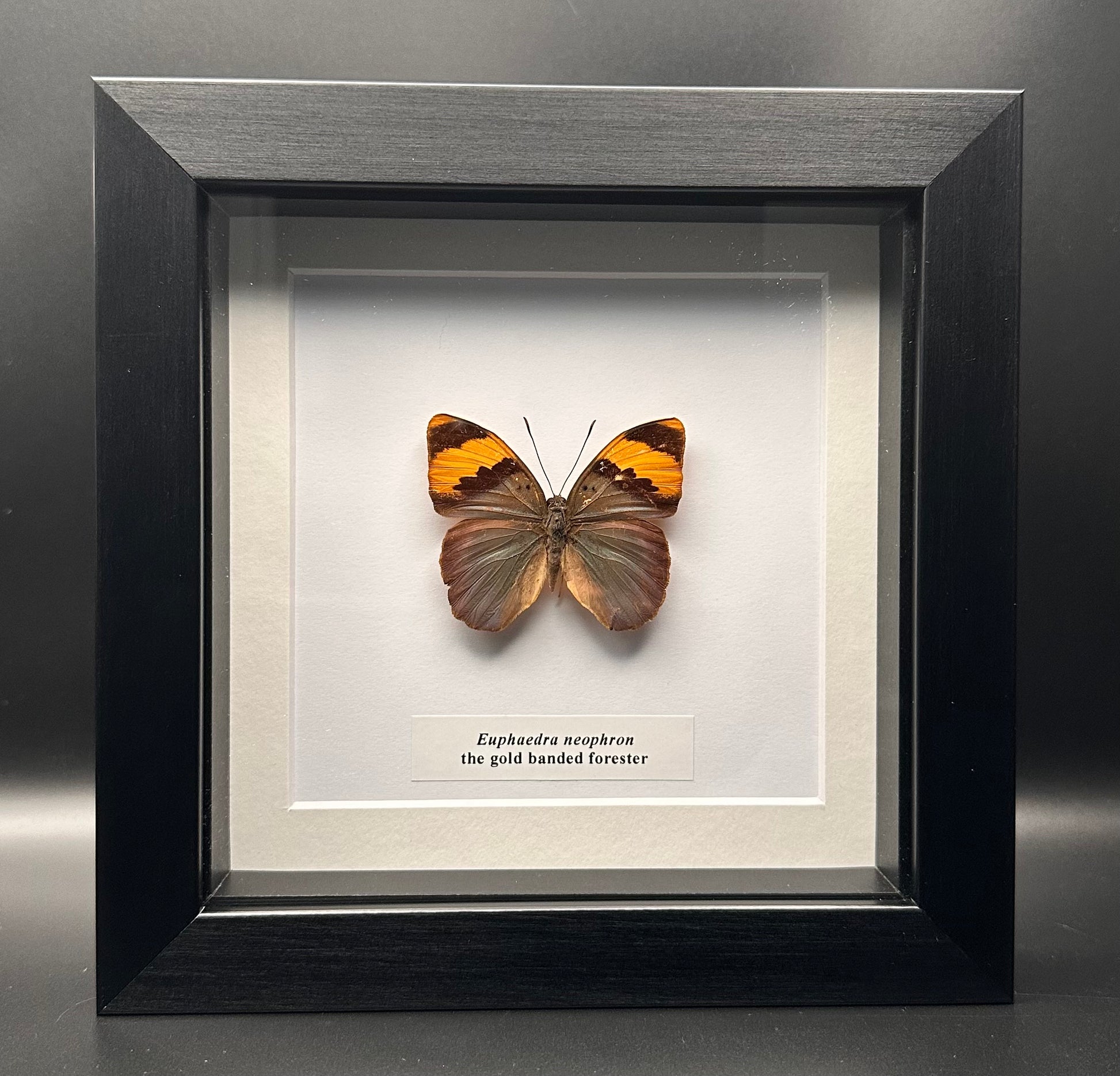 Measurements :The species is pinned and preserved in a 18x18cm black frame a white card background.