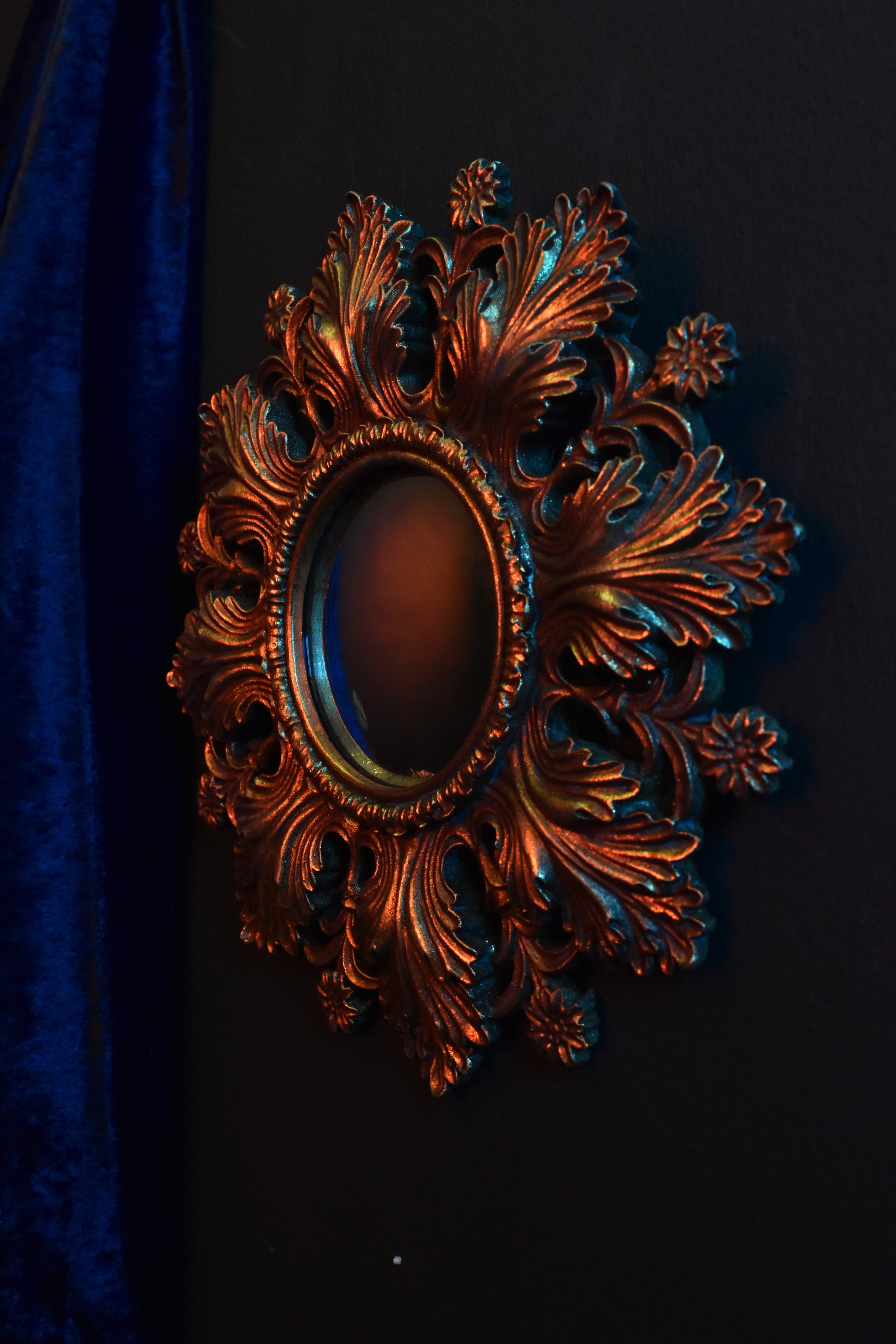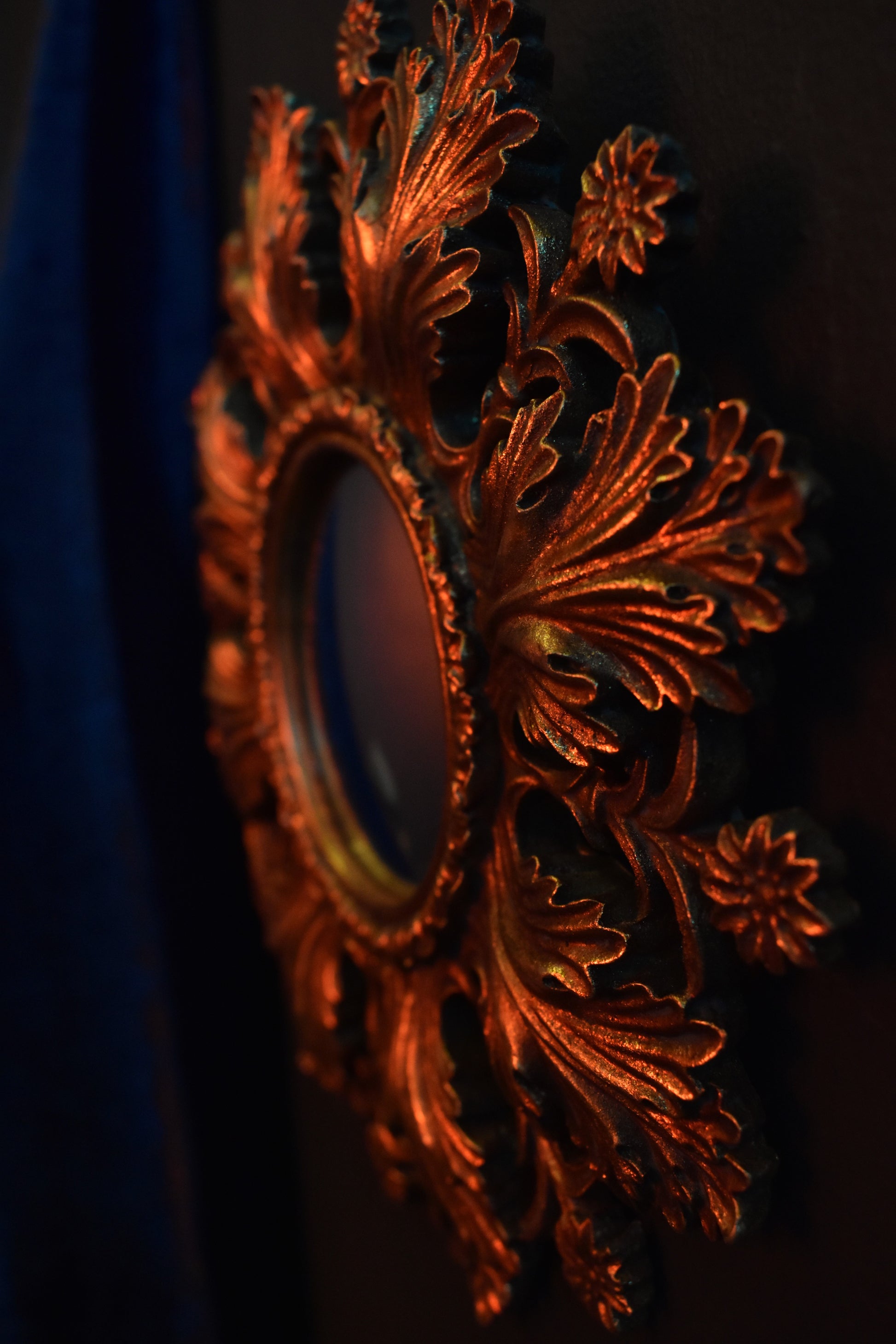 Delectably golden, this gorgeously decorative mirror offers much to bask in with its capturing finish and beautiful design. Amazing alone as a statement piece or paired with the other members of our sun mirror collection.