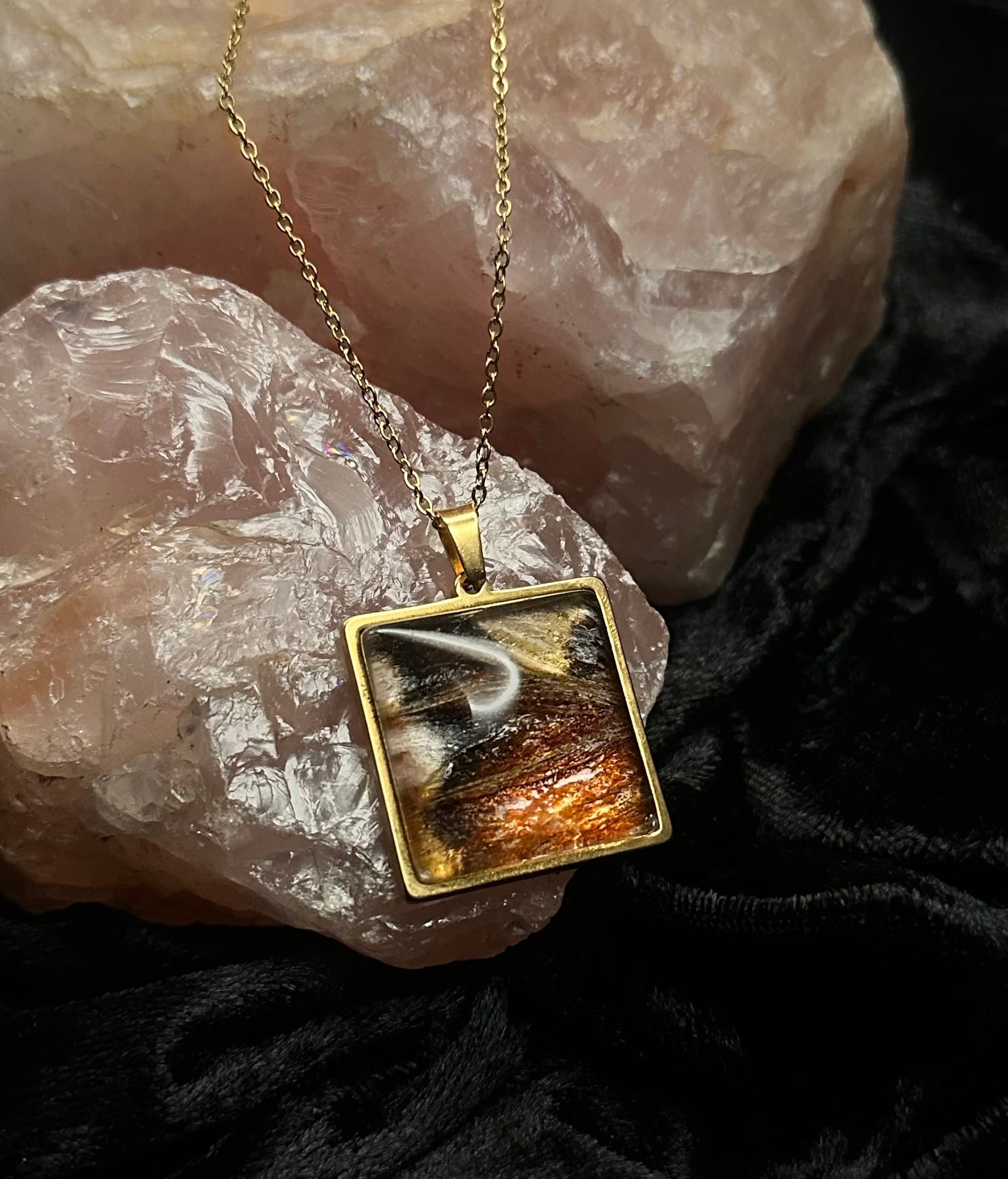 Capture nature’s fleeting beauty with this handmade necklace, featuring a preserved Attacus atlas wing, carefully encased in glass. Each piece is individually made in-house at TILLIUS; no two are ever the same. Once this necklace finds its home, it’s gone forever.