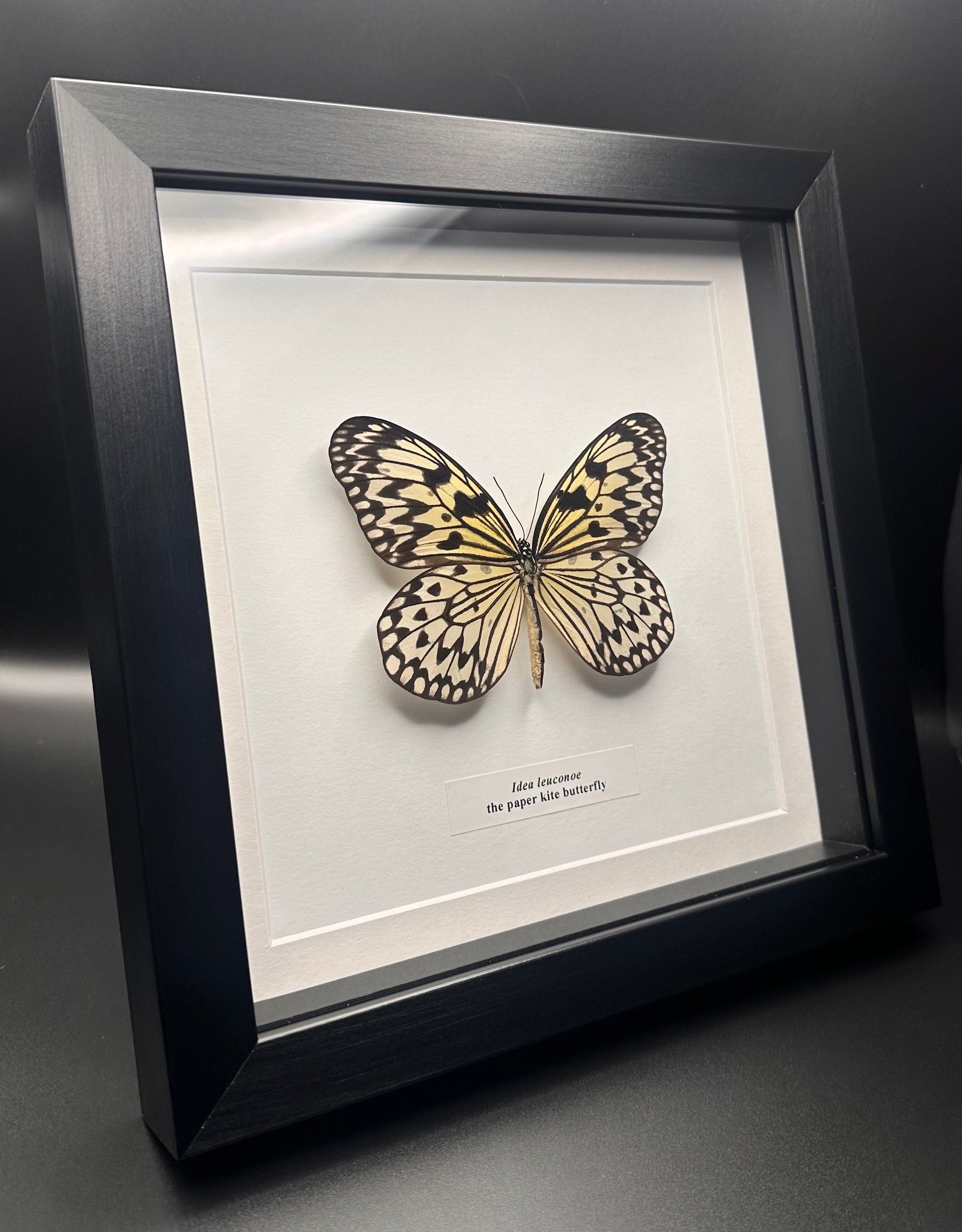 Measurements :The species is pinned and preserved in a 23x23cm black frame a white card background.