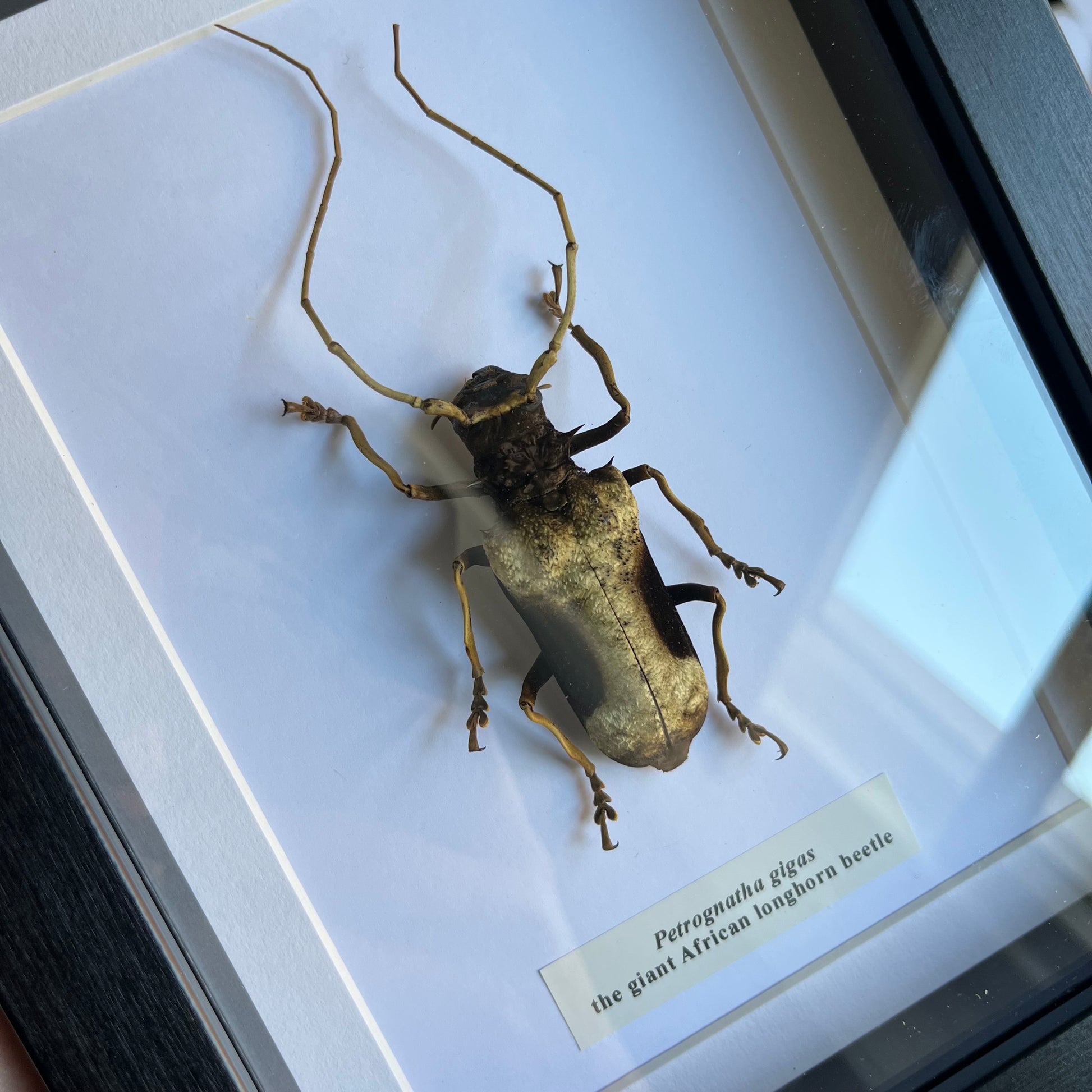 This beetle is missing the top part of its antenna, otherwise great condition.