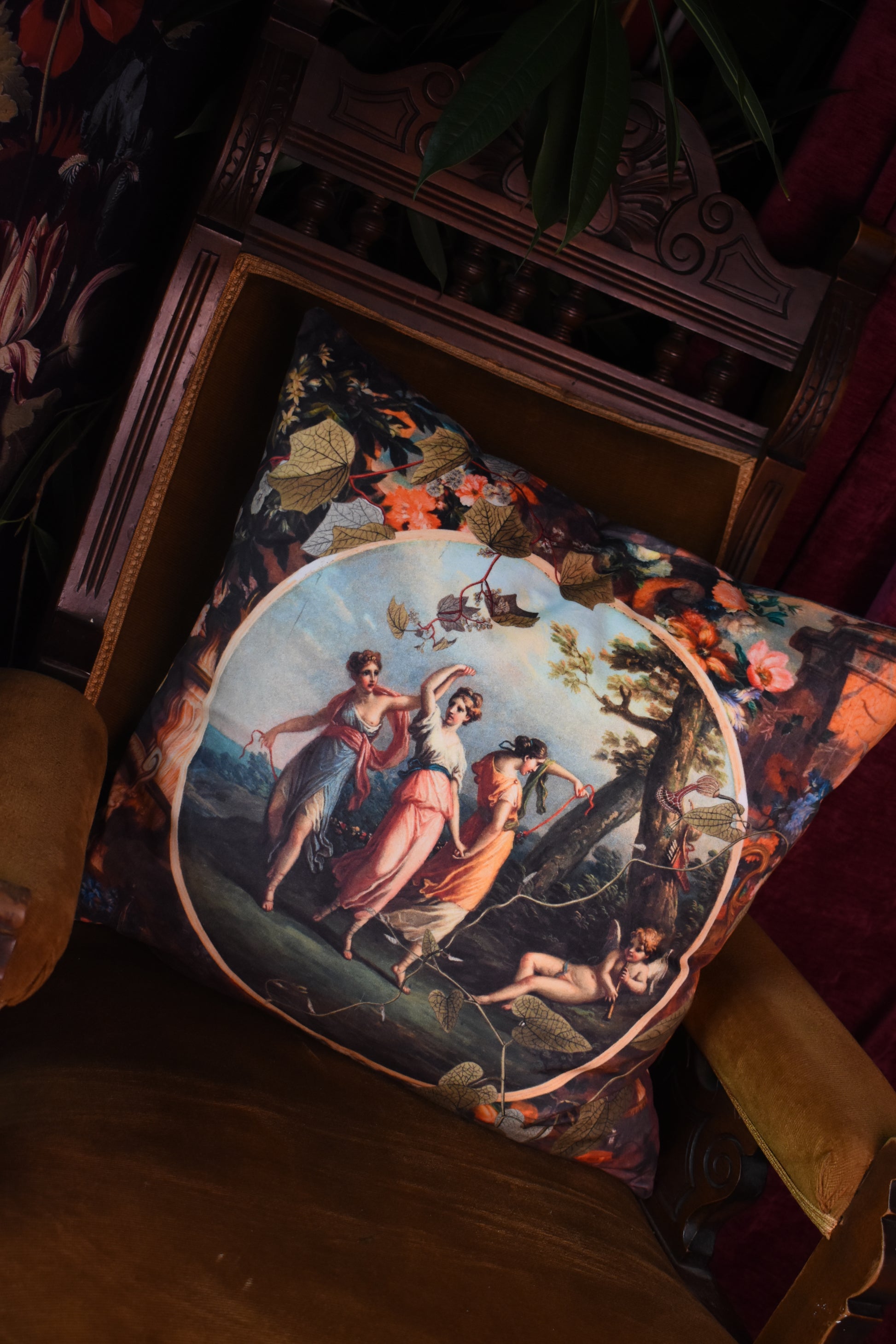 Invite a touch of timeless elegance into your home with the TILLIUS velvet cushion. Crafted in the UK, each cushion is made from sumptuous velvet and adorned with classical artworks re-imagined for the modern interior. The result? A piece that feels both refined and unexpected, like a stolen moment from a grand gallery, now living on your sofa.